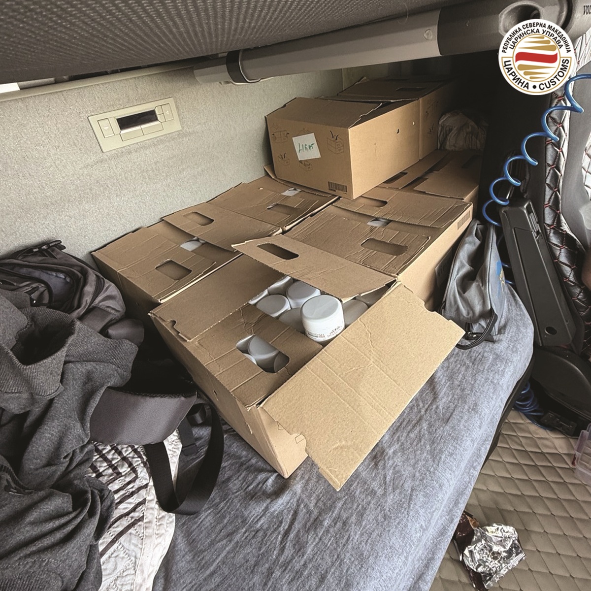 На граничниот премин Богородица мобилен царински тим при контрола на камион откри и спречи обид за нелегален внес на 100 килограми ветеринарни препарати и додатоци за исхрана за добиток. По извршена контрола со мобилен скенер, биле забележани неправилности во кабината на возилото, по што бил извршен деталeн преглед. На креветите во кабината биле пронајдени 100 килограми Tonisity Px и 7,5 литри Neo Boost – препарати наменети за исхрана и поддршка на растот кај прасињата и свињите. Станува збор за производи под ветеринарно-санитарна контрола, за чиј увоз е потребна посебна дозвола издадена од Агенцијата за храна и ветеринарство. Возачот, македонски државјанин, не поседувал соодветна документација за стоката. Против него е поведена прекршочна постапка, а пронајдените производи се привремено задржани за понатамошна постапка.