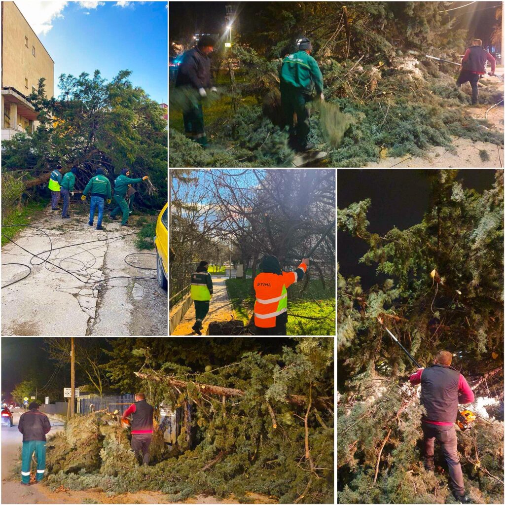 Екипите се на терен и постапуваат со целосна мобилизација поради паднати и оштетени дрвја на повеќе локации низ градот како резултат на засилениот ветер. Нашите служби веднаш излегоа на терен за отстранување на опасностите и обезбедување безбедно движење, наведува Ѓорѓиевски на неговата Фејсбук-страница.