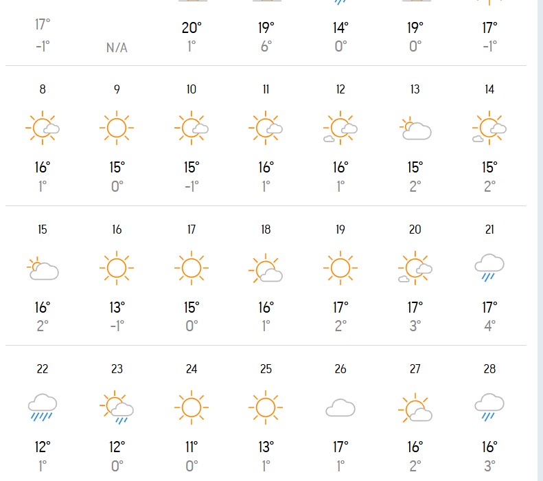 За време на продолжениот викенд времето во Македонија според прогнозата на Accuweather ќе биде сончево и топло во петок, додека во сабота не очекува дожд. Во недела повторно сонце.