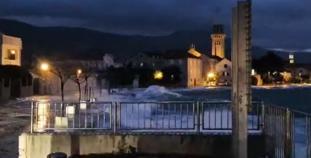 Силно невреме проследено со поројни дождови, грмотевици и олуен јужен ветер повторно го зафати далматинскиот брег. Под влијание на циклонот над Јадранското Море, регистрирана е силна циклонска плима која предизвика морето забрзано да се крева и да навлегува во крајбрежните населени места.