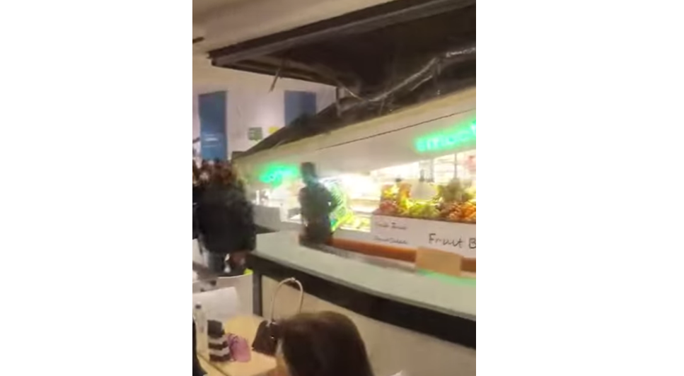 Во трговскиот центар „Космос“ во Солун, Грција, вчера се урна дел од таванот на првиот кат, во делот каде што се сместени рестораните.